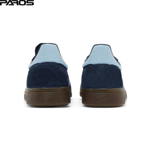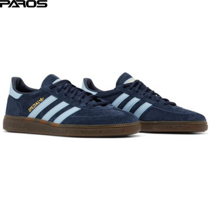 A style loved by football fans and streetwear enthusiasts, the adidas Handball Spezial features a timeless navy blue design, enhanced with the iconic 3-Stripes on the sides in light blue. This pair is crafted from leather and sits atop a gum outsole for a retro look.