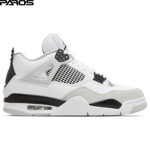 The Air Jordan 4 Retro ‘Military Black’ showcases the same color blocking and materials featured on the OG ‘Military Blue’ colorway from 1989. Smooth white leather is utilized on the upper, bolstered with a forefoot overlay in grey suede. Contrasting black accents make their way to the TPU eyelets, molded heel tab, and the Jumpman logo displayed on the woven tongue tag. Lightweight cushioning comes courtesy of a two-tone polyurethane midsole, enhanced with a visible Air-sole unit under the heel.