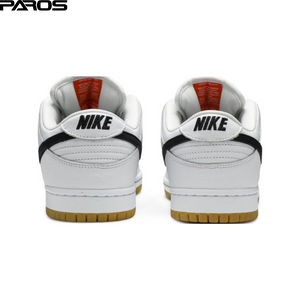 The uppers of this Nike Dunk Low White/Black's are made of white leather with black overlays, which matches perfectly with the white midsole and black rubber outsole. Nike branding comes in the form of Swoosh logos on both the lateral and medial sides, as well as extra branding on the tongue and heel.
