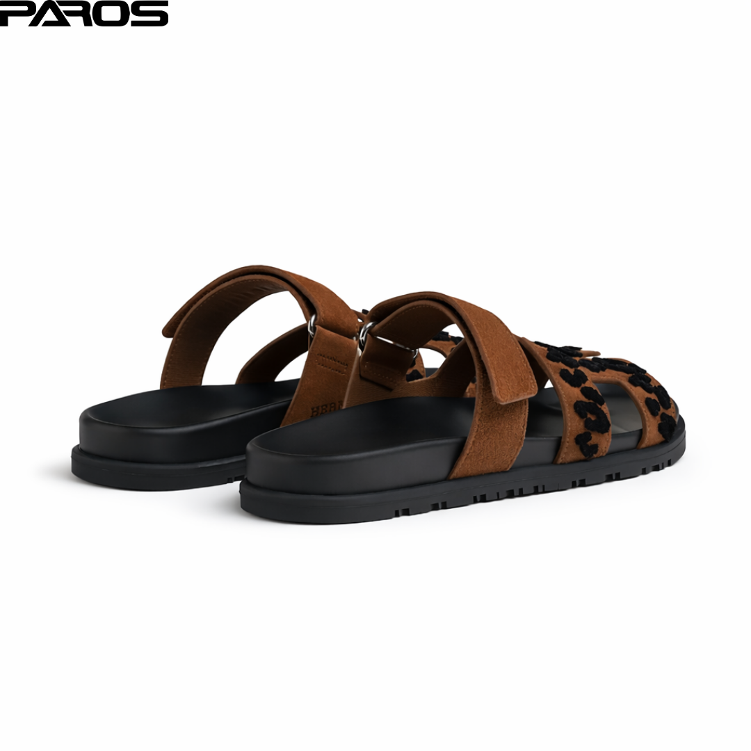 Step into bold luxury with the Hermès Chypre Sandal – Brun Fumé / Noir.
