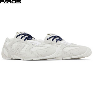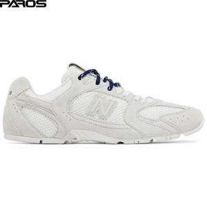 A bold reinterpretation of a retro classic, the New Balance x Miu Miu 530 SL in white merges high fashion with sporty heritage. Featuring a distressed white suede upper with raw edges and deconstructed details, this sneaker channels an effortlessly cool, worn-in aesthetic. Lightweight and versatile, it offers exceptional comfort with a touch of rebellious luxury.