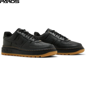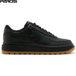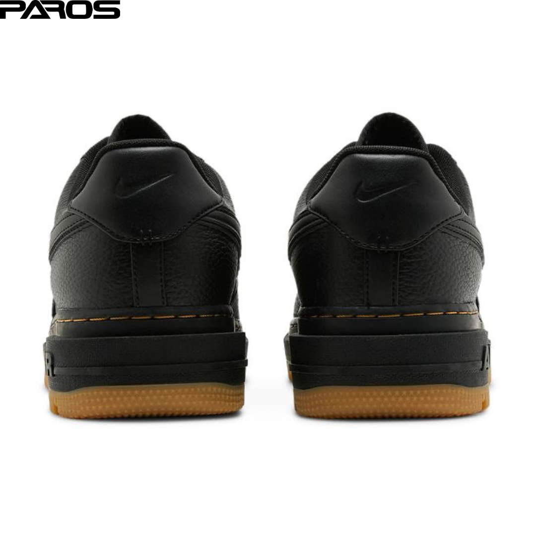 The Nike Air Force 1 Low Luxe Black Gum is an Air Force 1 sneaker edition that appears in the black/black-Bucktan-Gum Yellow colorway.