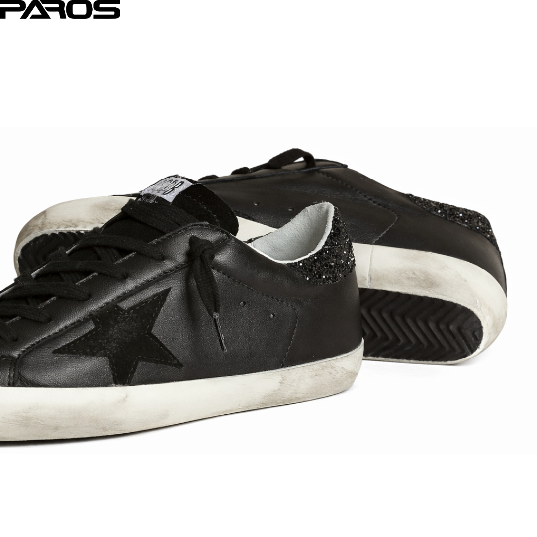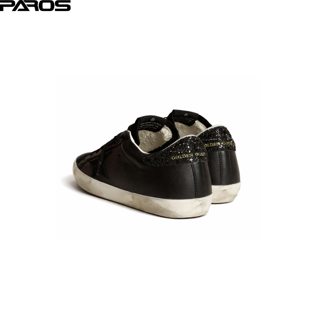 Golden goose Super-Star in black nappa with black star and glitter heel tab