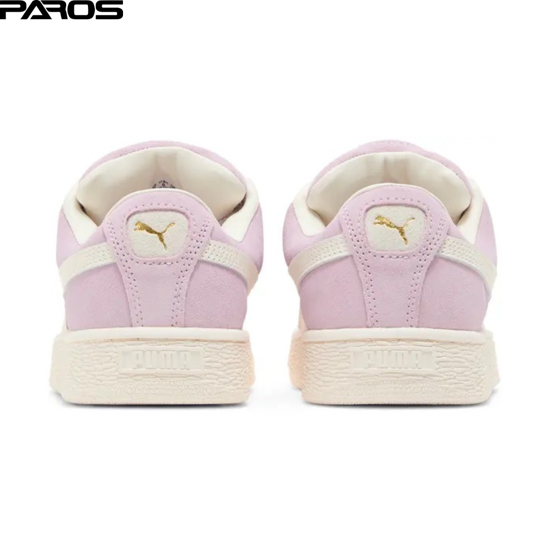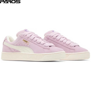 Upgrade your style with the Puma Suede XL in soft pink, featuring a classic and timeless design. This sneaker boasts a premium suede upper, complemented by a cream-colored Puma Formstrip for a sleek and modern look. The thick laces add a bold touch, while the durable rubber sole ensures all-day comfort and stability