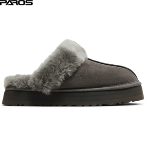 The UGG Disquette Slipper Charcoal (Women's) takes slipper style to a whole new level with its bold platform sole and rich charcoal colorway. Made from soft suede and lined with UGG's plush wool, this slipper combines fashion and comfort in one chic package. The slip-on design is easy to wear, whether you're lounging at home or heading out for a quick errand.
