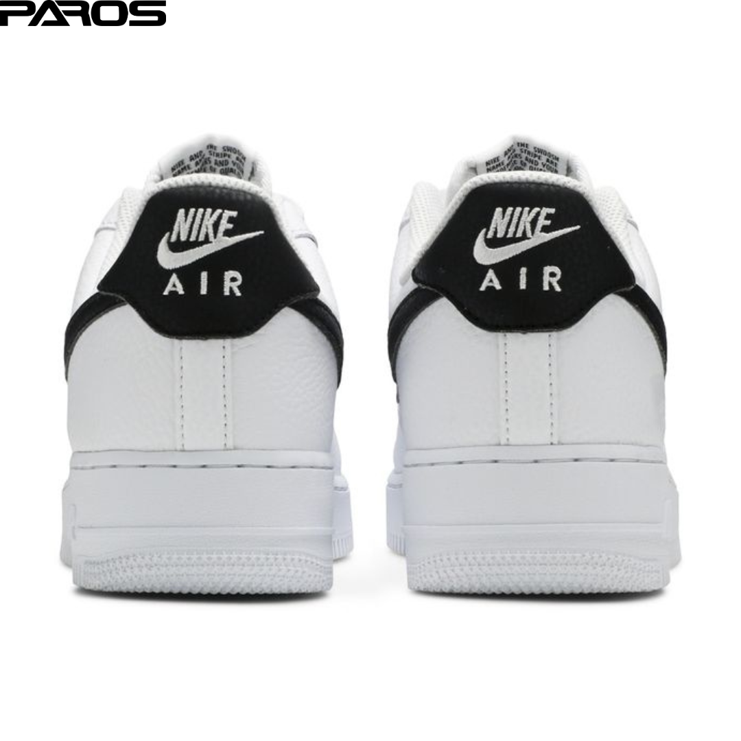 The Nike Air Force 1 ‘07 ‘White Black’ presents an elemental colorway of the iconic silhouette. The upper is constructed from tumbled white leather, contrasted by a black Swoosh and a matching black heel tab marked with classic Nike Air branding. The low-top is supported by a rubber cupsole, which houses foam cushioning enhanced with a Nike Air unit in the heel. Underfoot, the signature pivot point outsole is a reminder of the shoe’s hardwood roots.