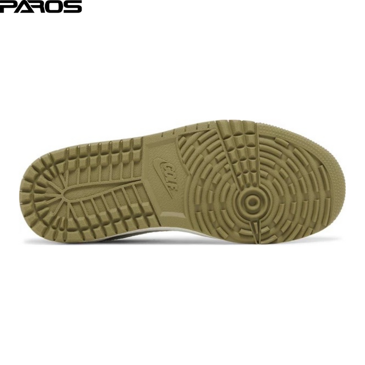 Travis Scott lends his bold vision to the classic Air Jordan 1 Low Golf sneakers with this pair. They arrive in a panelled leather construction with shades of olive green and white while the reversed Swoosh logos, a trademark of the rapper’s collaborations with Nike and Jordan, complete the look.