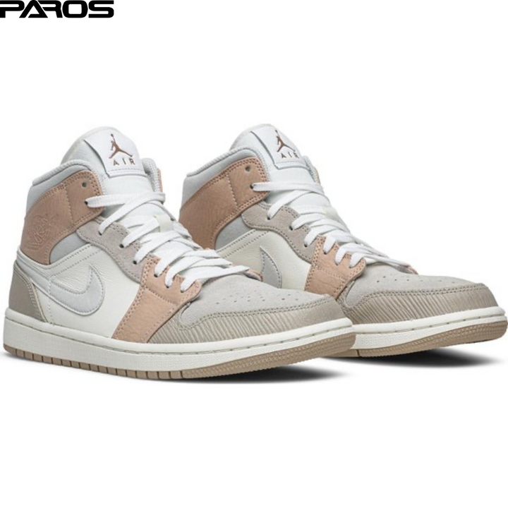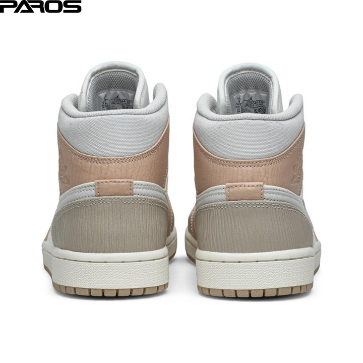the Air Jordan 1 Mid 'Milan' draws inspiration from Italy’s fashion capital, featuring colors and textures that call to mind the city’s gothic architecture. The upper combines an Off-White leather quarter panel with textured leather overlays in varying shades of beige, along with a tan suede toe box and a grey textile collar. A leather MLN hangtag gives the nod to fine Italian craftsmanship.