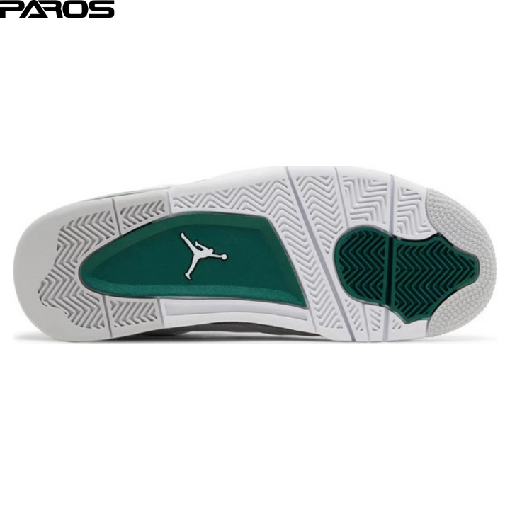 The Air Jordan 4 Retro ‘Oxidized Green’ arrives in a crisp white leather upper with tonal quarter panel netting and grey molded eyelets. Contrasting green accents make their way to the support wings and back tab, marked with embossed Jumpman branding. A second Jumpman logo decorates the woven tongue tag. An additional hit of green coloring distinguishes the lightweight polyurethane midsole, featuring an exposed Air-sole unit in the heel