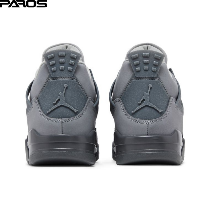 The Air Jordan 4 Retro SE 'Wet Cement' also known as 'Paris Olympics' drapes the classic silhouette in a neutral monochrome design in honor of the 2024 Summer Olympics. Varying shades of grey are applied to the nubuck upper, featuring a suede forefoot overlay and a debossed grid pattern on the quarter panel. Speckled detailing covers the TPU support wings and molded back tab, marked with a raised Jumpman icon. A second Jumpman logo decorates the tongue. The sneaker sits atop a dark grey polyurethane midsole with visible Air-sole cushioning in the heel.