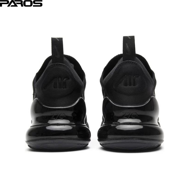 Black rubber Air Max 270 sneakers from Nike featuring a round toe, a flat sole, a pull tab at the rear, a signature Nike swoosh, a logo patch at the tongue and a lace fastening. These styles are supplied by a premium sneaker marketplace. Stocking only the most sought-after footwear, they source and curate some of the most hard to find sneakers from around the world..