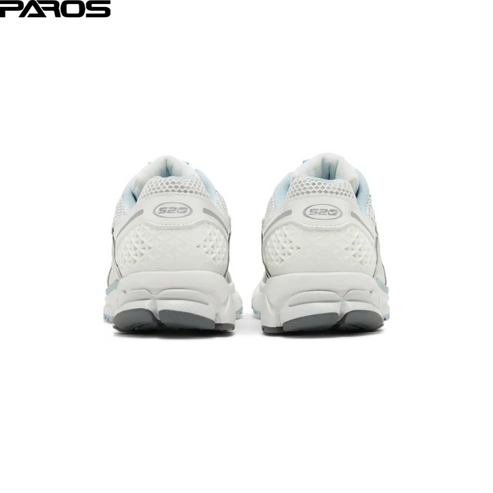 The Nike Zoom vomero 5 520 Pack Ocean Bliss brings technical running shoe comfort in a unique color combination. With a silver base and accents in delicate light blue, it combines luxury and functionality. The '520' design series relies on a harmonious combination: white mesh, gray and metallic-silver coatings made of leather and synthetics, shaded with refreshing blue elements at important contact points. The TPU frame offers stop on the heel, while the robust sole ensures a comfortable running experience. A closer look reveals stylish branding details such as the '520' emblem on the heel and a delicate blue tongue label. This model, published on May 15, 2023, promises stylish, well -padded running comfort, whether during sports or in leisure. The incomparable white-silver-blue color course makes every step a experience.