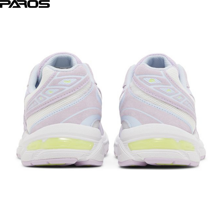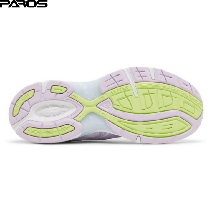 The ASICS Women's Gel 1130 'Lilac Tech' is built with breathable white mesh on the upper, featuring suede overlays in delicate shades of lavender and blue. ASICS branding decorates the tongue and sockliner in eye-catching neon green. The same hue distinguishes the Gel insert embedded in the heel of the full-length foam midsole, fitted with a blue-tinted TRUSSTIC support system in the midfoot.