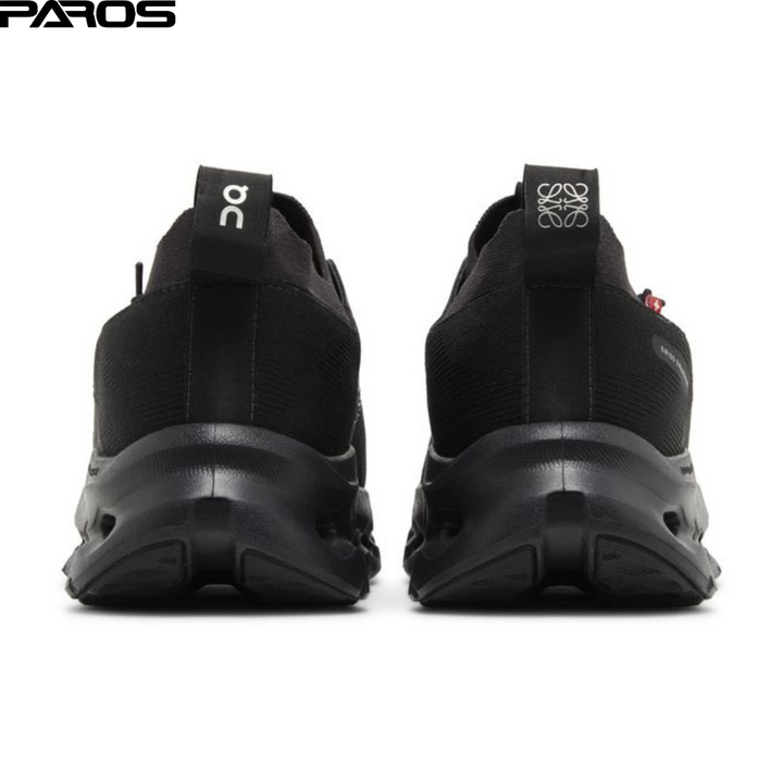 The On Running Cloudtilt LOEWE All Black is a limited-edition running shoe from the Swiss-based brand On and Spanish luxury brand Loewe that is dressed in an "All Black" colorway.