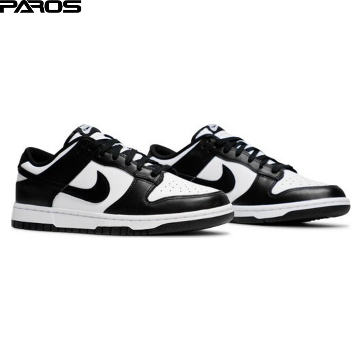 The uppers of this Nike Dunk Low White/Black's are made of white leather with black overlays, which matches perfectly with the white midsole and black rubber outsole. Nike branding comes in the form of Swoosh logos on both the lateral and medial sides, as well as extra branding on the tongue and heel.