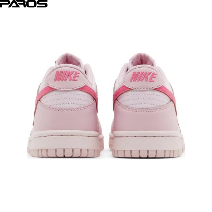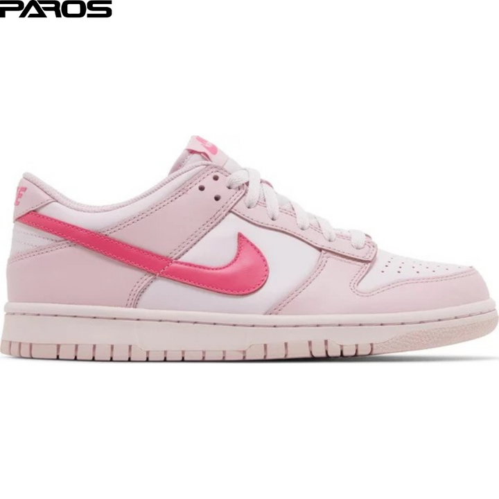 The Dunk Low GS 'Triple Pink' also known as ‘Barbie’ refreshes the classic style of the retro Nike basketball shoe. The sneaker's leather upper is constructed entirely from a light pink base and overlays. Nike branding is accented in hot pink across the Swoosh, tongue tag, and heel. A breathable nylon tongue provides comfort while the rubber outsole anchors the build.
