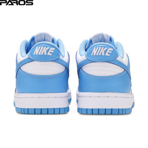 Made for big kids, the Nike Dunk Low GS ‘University Blue’ features a leather upper in a color-blocked design redolent of the shoe’s collegiate hardwood roots. A crisp white base is contrasted by a pastel blue finish on the shoe’s eyestay, Swoosh, and heel and forefoot overlays. Classic Nike branding lands on the woven tongue tag and heel tag. The low-top sits on a durable rubber cupsole, underpinned by an outsole that features performance-ready traction.