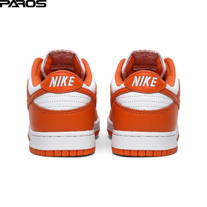 The Dunk Low Retro SP ‘Syracuse’ celebrates the silhouette’s 35th anniversary with a classic colorway from Nike’s ‘Be True to Your School’ series from 1985. The two-tone high-top Dunk that originally represented the University of Syracuse basketball team is reinterpreted as a versatile low-top. The all-leather upper combines a crisp white base with Orange Blaze overlays, complete with a woven Nike tag on the breathable mesh tongue.