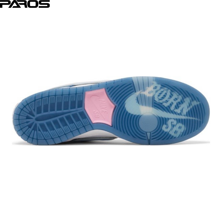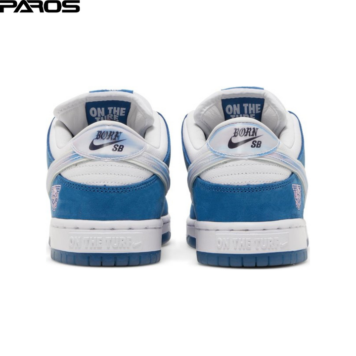 The Born x Raised x Nike Dunk Low SB ‘One Block at a Time’ brings a raft of unique details to the classic silhouette. The LA-based streetwear brand outfits the upper in textured white leather with ornate perforations on the toe box and contrasting nubuck overlays in Dodger blue. ‘One Block at a Time’ is inscribed across the toe of each shoe, while a decorative emblem in pink embroidery decorates the lateral heel. A holographic effect enlivens the Swoosh and back tab, marked with a lenticular Born SB logo. The sneaker sits atop a white rubber midsole, featuring embossed lettering that spells out ‘On the Turf’ across the heel. Underfoot, the semi-translucent blue rubber outsole reveals oversized Born SB branding.