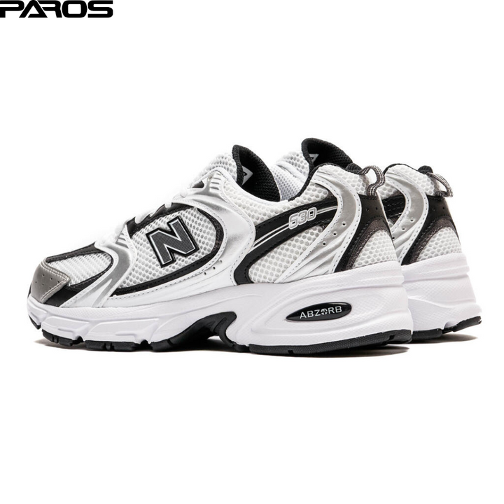 The New Balance 530 White Silver Metallic Black is a classic sneaker that blends retro style with modern comfort and performance features.