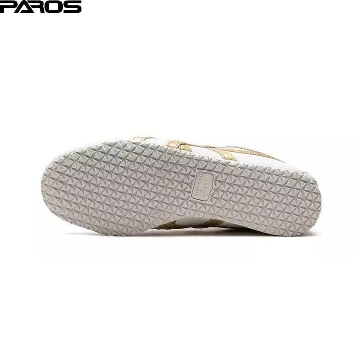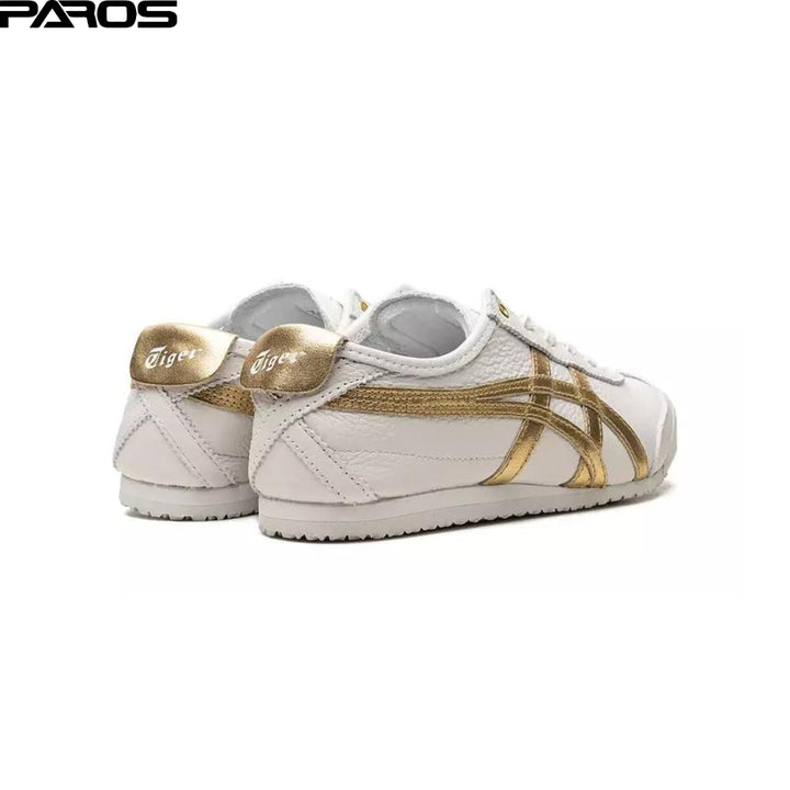 Inspired by classic training shoes, the MEXICO 66 sneakers from Onitsuka Tiger feature an eye-catching gold-tone design stitched with the legendary Onitsuka Tiger stripes. Crafted from calf leather, they have a 60s look that sits atop a flat rubber sole.
