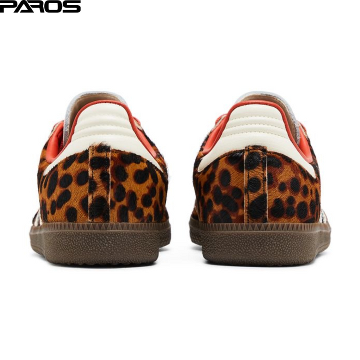the adidas Women's Samba OG 'Preloved Red' gives the classic indoor soccer shoe an exotic makeover. Dressed entirely in faux brown pony hair, the upper features black cheetah spots with contrasting off-white leather accents on the serrated three-stripes and black tab. The low-profile silhouette is secured with brick red laces, matching the synthetic leather lining. Anchoring the sneaker is a durable gum rubber sole unit.