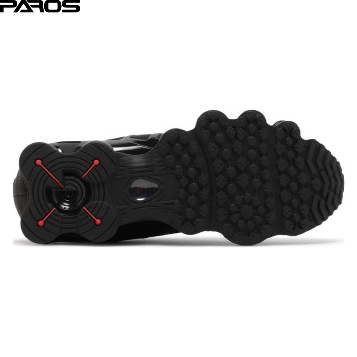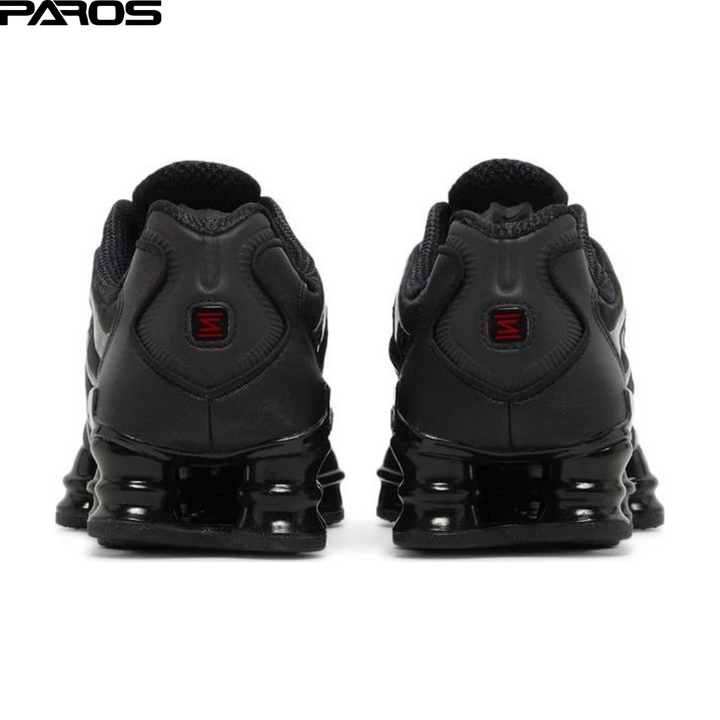 The Nike Shox TL "Black Max Orange" is a women's exclusive colourway of the retro sneaker with a monochromatic black design. This model features a black fabric construction with tonal TPU overlays and is enhanced by a black patent leather Swoosh logo on either side of the shoe. Underneath, the Shox TL’s signature piston-shaped columns provide a comfortable and responsive ride.