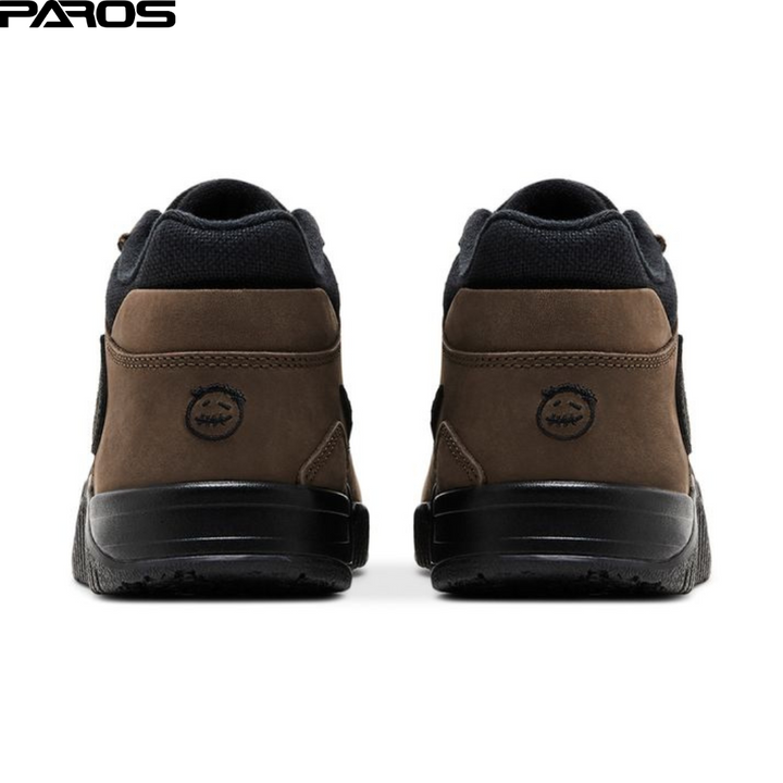 The Travis Scott x Jordan Jumpman Jack TR 'Dark Mocha' brings muted earth tones to Travis Scott's debut signature shoe. La Flame's signature reverse Swoosh, rendered in black suede, adorns the lateral side of an upper crafted from breathable black canvas with brown nubuck overlays. Tonal Jumpman branding decorates the tongue, while the Cactus Jack smiley logo appears on the back heel. 'TS' is embroidered on the adjustable forefoot strap. Underfoot, an oversized 'Jack' graphic is scrawled across the black rubber outsole, which wraps up the matching black foam midsole for added durability and traction.